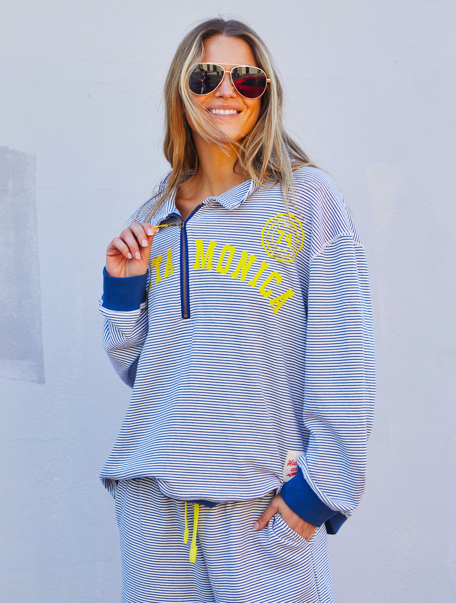 SANTA MONICA 1/2 ZIP - BLUE/WHITE