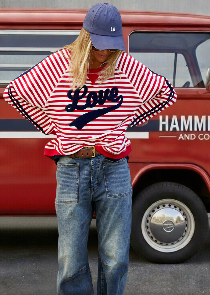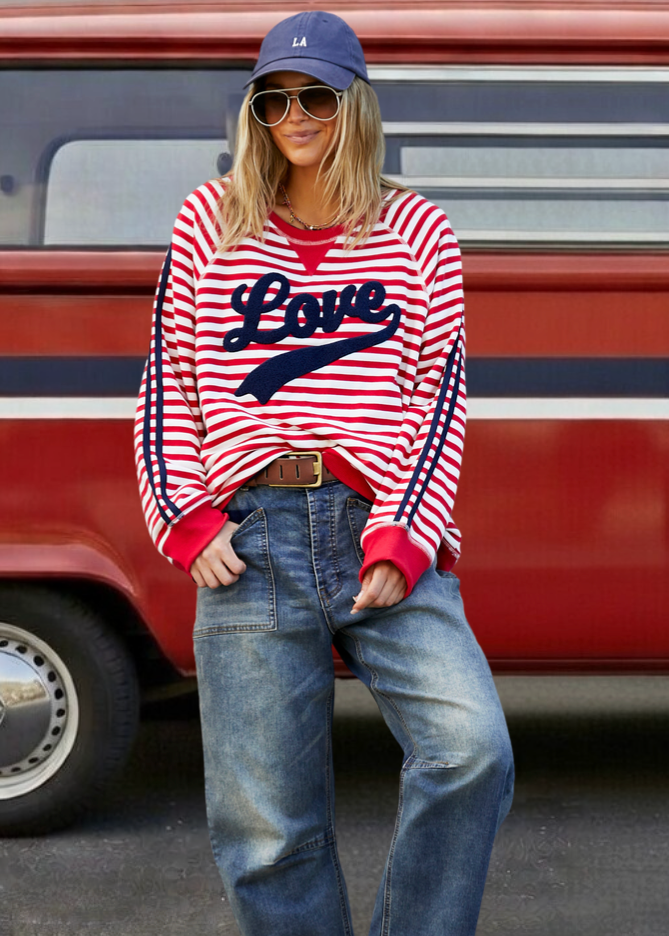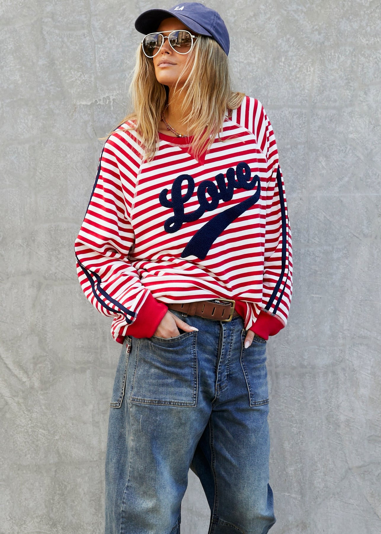 RETRO LOVE STRIPE SWEAT RED/WHITE